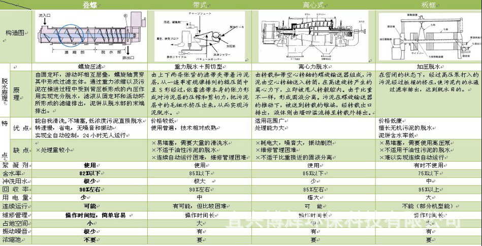 各類型脫水機(jī)對(duì)比參考